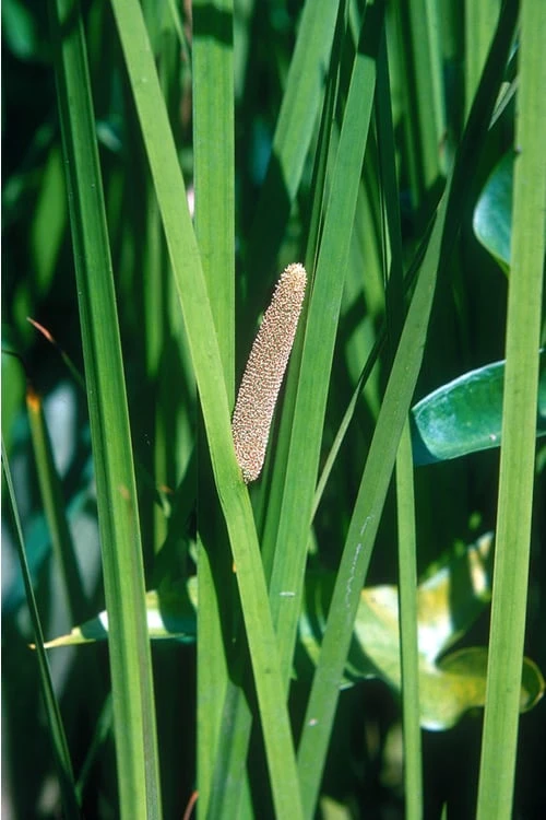An excellent North American native wetland plant for rain gardens or containers where it can be grown outdoors or indoors as a houseplant, American Sweet Flag is a perfect choice for planting around the edges or ponds, small lakes, stream banks and other areas where the soil stays moist to wet. The “sweet” in the name comes from the aromatic leaves. The roots of this plant tie up toxins in the water helping to purify it, which the fish in your garden pond or small lake will appreciate. Sweet Flag forms slow-spreading stands of upright, sword-shaped, bright green leaves that form a colony along the waters edge that looks similar to Iris or Cattails. Mid summer brings chartreuse color flower spikes that give way to fleshy berries which turn a rich brown as they dry in the summer heat. American Sweet Flag provides a bold vertical accent in full sun to partial shade.