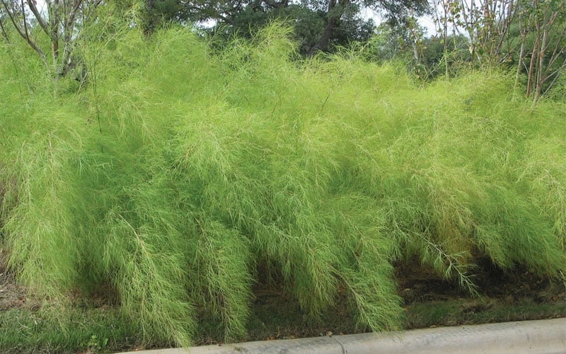 One of our favorite of all ornamental grasses…or is it a bamboo? Well, technically speaking, Bamboo are considered ornamental grasses, but the Bamboo Muhly is not a bamboo. Though the airy stems do resemble a dainty bamboo, it’s a Muhly Grass, scientifically known as Muhlenbergia dumosa. The soft-textured, bright green foliage of Bamboo Muhly Grass sways in the gentlest of breezes, providing drama in the landscape. Through fall and into winter masses of small flowers give the plant a soft pinkish green cast. At 4 to 6 feet tall and spreading slowly up to 5 feet wide, Bamboo Muhly is a fine accent in smaller garden spaces, or in groupings or as a billowing natural hedge in larger landscape borders. It is hardy year-round outdoors in USDA Zones 8a to 11, but also very nice in containers that can grace patios, decks and other outdoor living spaces during the warm season, and be brought indoors during winter in zones north of 8. It prefers as much sun as you can give it and is highly drought tolerant when established.