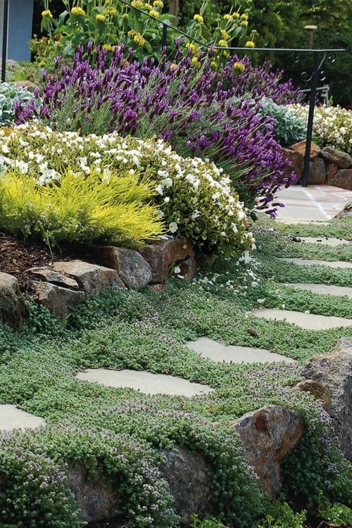 Suggested Spacing: 18 inches apart for mass planting; 6 to 12 inches apart to fill gaps between stepping stones or pavers